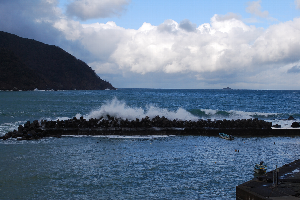 北西の風が吹き、食見海岸では2mほどのうねりが押し寄せています。
