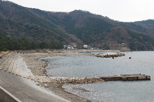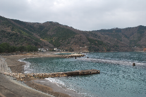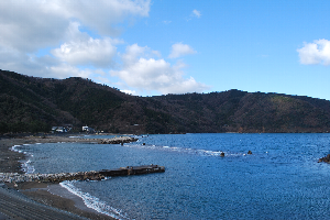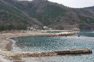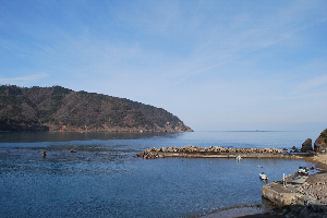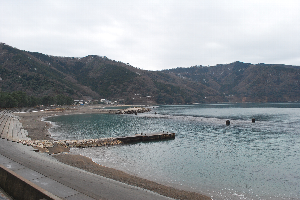 食見海岸は15日の荒れ模様とうって変わって、波もなく凪いでいます。