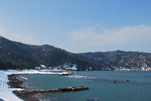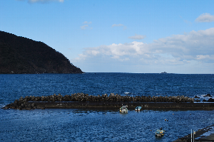 2015年2月15日9時現在は、曇りで、強い北西の風が吹き、海上も荒れ模様です。