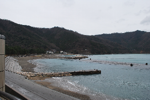 食見海岸は、昨日とは違い大きな波は無く穏やかな海況となっています。