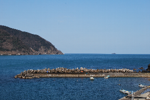 天気が良く、海水の透明度が高いため防波堤で魚釣りを楽しんでいる人の姿も見られました。