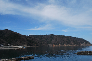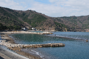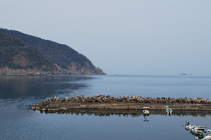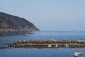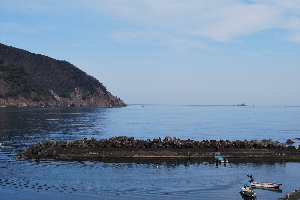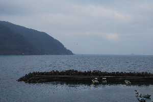 食見海岸は、さざ波が立っていますが、波も低く比較的穏やかです。