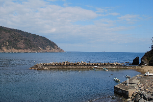 食見海岸は、波がほとんど無く穏やかで、波打ち際から「ザザザ・・・」という波の音が聞こえます。