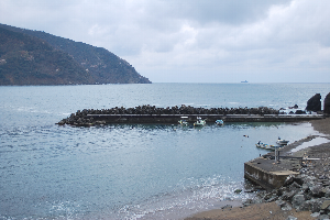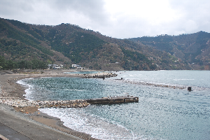 2015年4月8日9時現在は、曇りで、寒気が入ったため寒い天候です。 食見海岸は、弱めの北風で波高が1mぐらいあります。 海水の透明度は前日荒れたせいか透明度が低くなっています。
