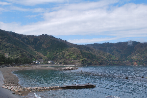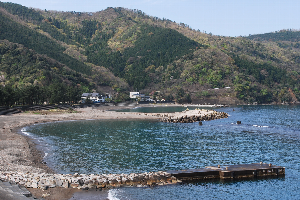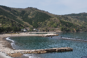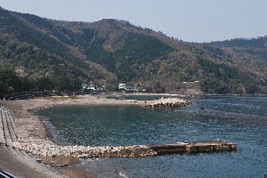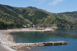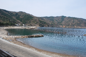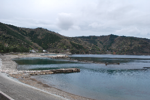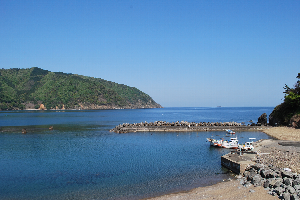 食見海岸はとても穏やかで、波もさざ波程度です。