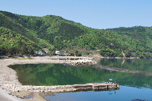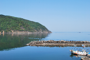 食見海岸は、波が無く水面が鏡のようになっていて湖だと勘違いしてしまいそうになるほど穏やかな海況です。