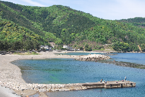 食見海岸は、さざ波程度の極めて小さな波がありますが穏やかな海況です。