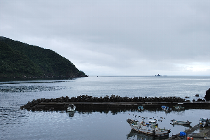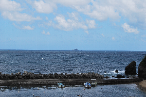 足湯からは三角形の島影が特徴的な千島がとてもはっきりと見えています。
