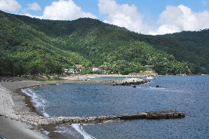 食見海岸では、低い風波が立っています。潜堤の手前にあった流れ藻は消え、食見海水浴場の砂浜に打ち上げられています。