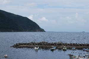 食見海岸は、濁りはありませんが、0.5mほどの波があります。