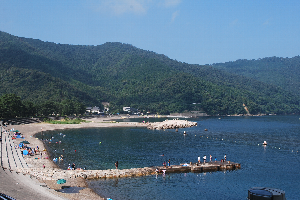 食見海水浴場では、少しですが海水浴を楽しむ方々も見受けられました。