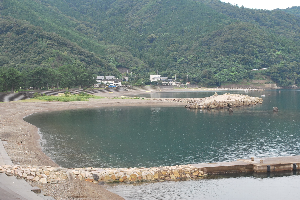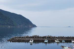 食見海岸は、風がなくべた凪で、とても穏やかな海況です。