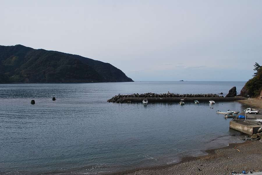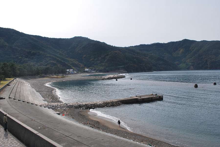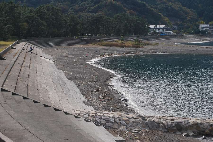 食見海岸は、風も波もなく静かな海況で、昨日の漂流物が浜辺に漂着していました。