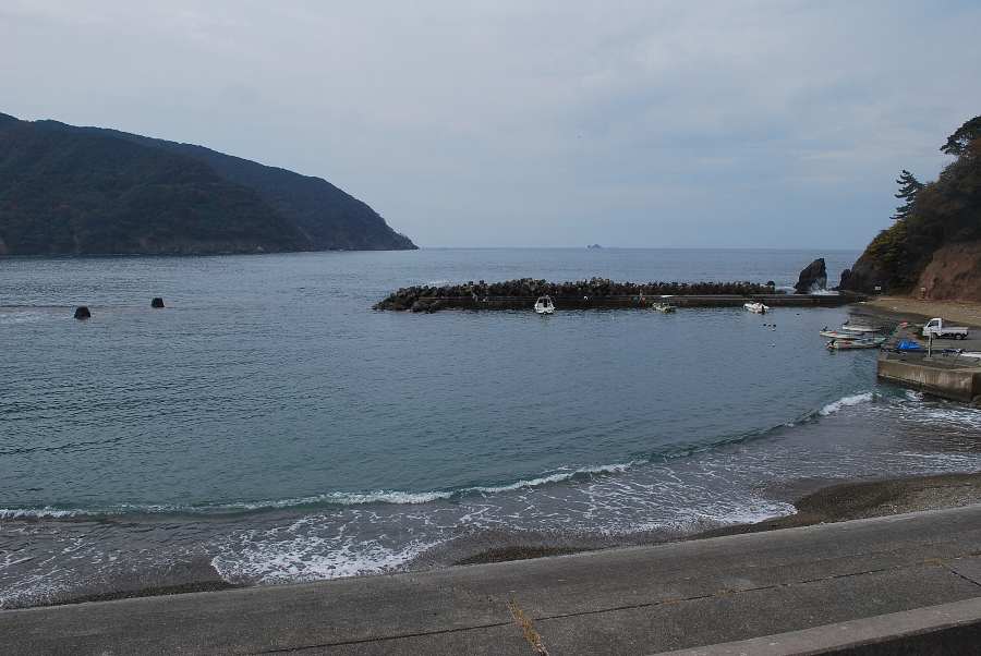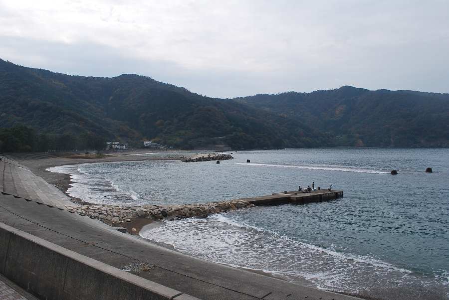 食見海岸は、大陸にある高気圧と低気圧の影響で、2mほどの波が押し寄せており、防波堤を濡らしています。