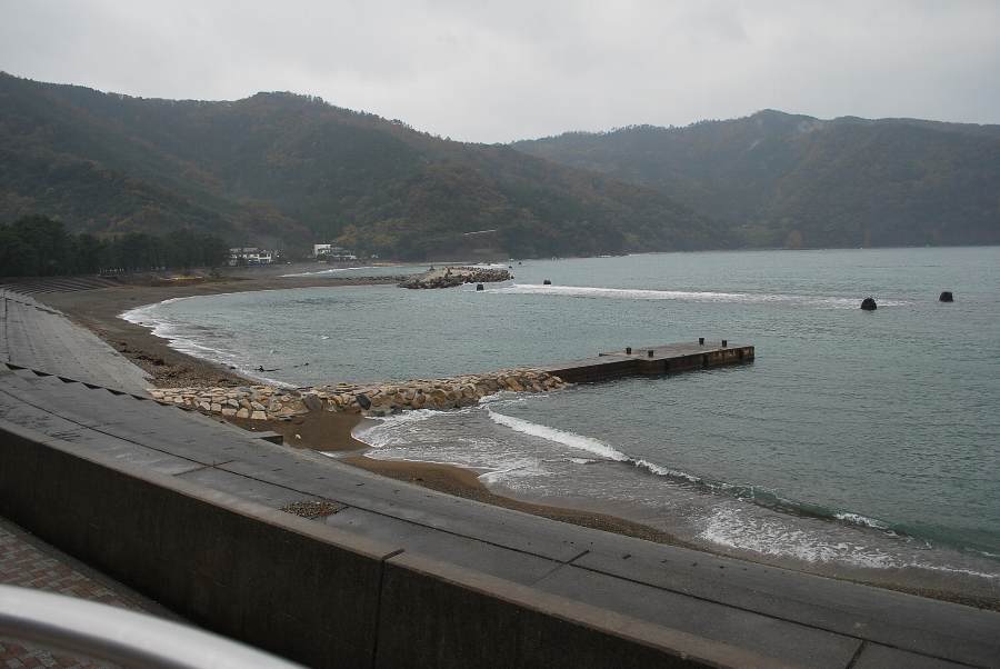 食見海岸は、0.5mほどの波が来ています。