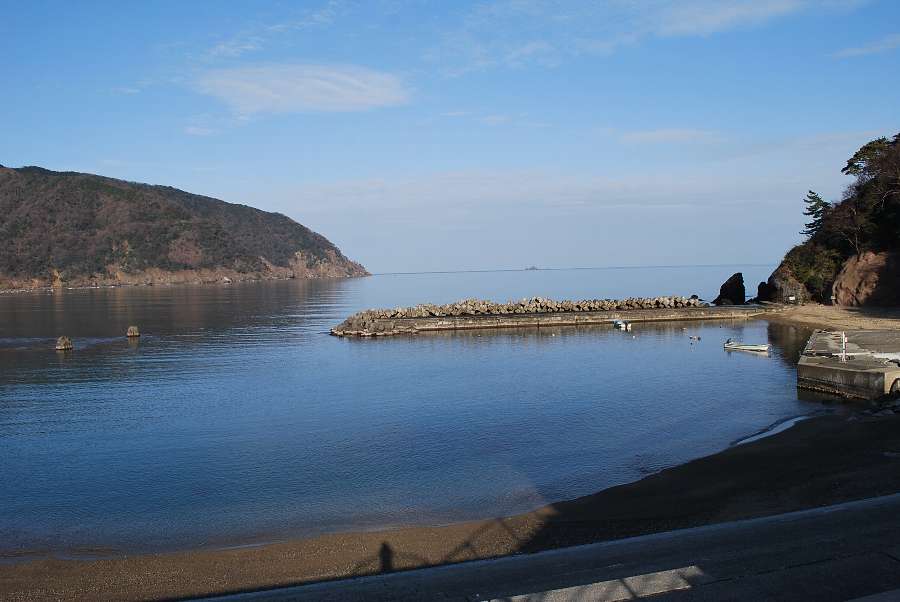 食見海岸は波が0.5mも無く、穏やかな海況です。