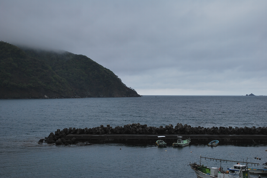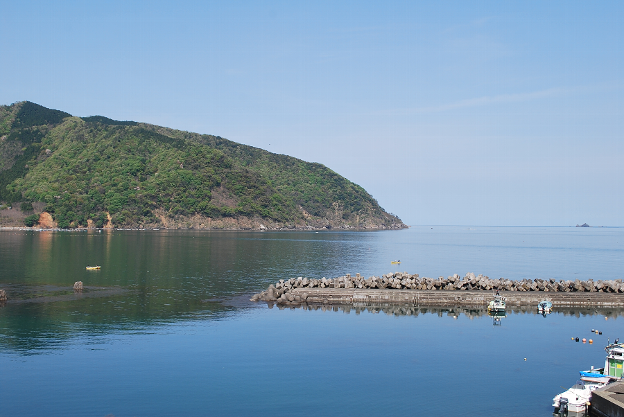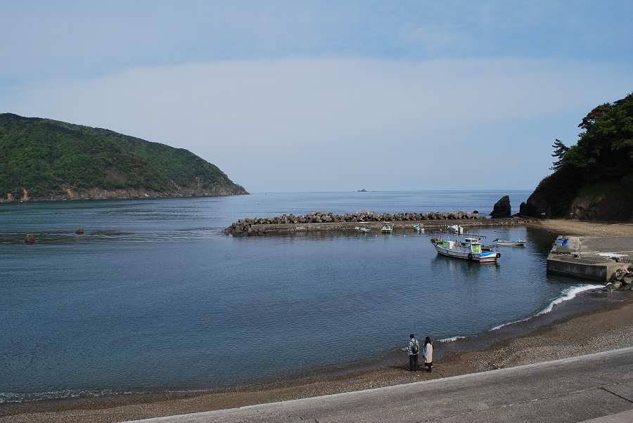 食見海岸は、凪いでいて防波堤で釣りをしている方の姿も見られました。