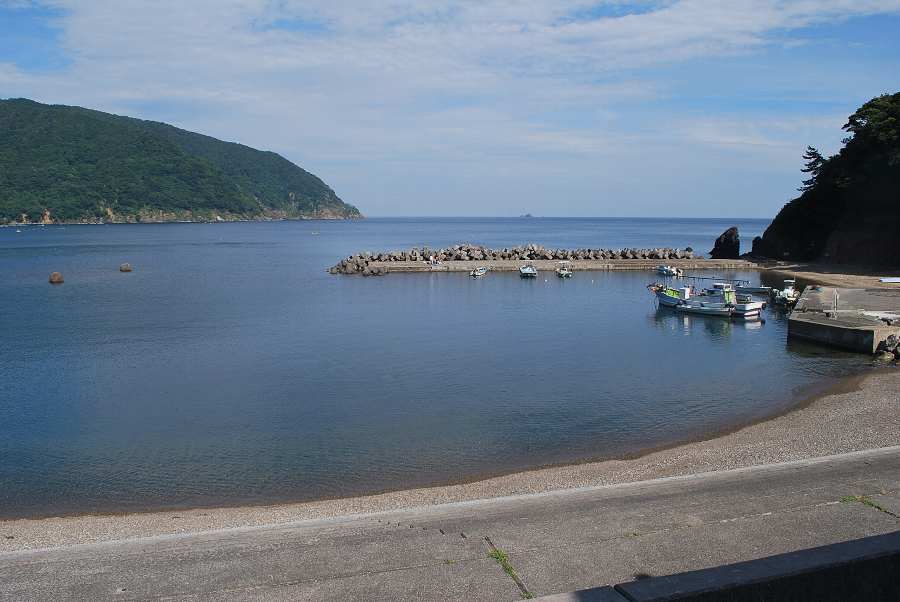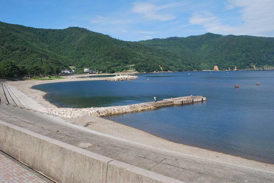 食見海岸はさざ波しかなく穏やかな海況です。