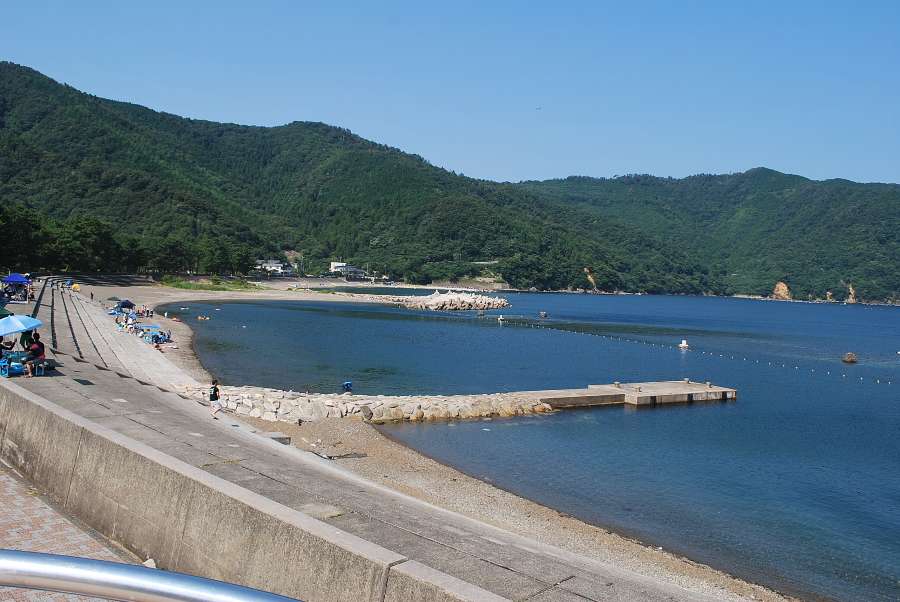 食見海岸は、波がほとんど無く、海水浴日和です。