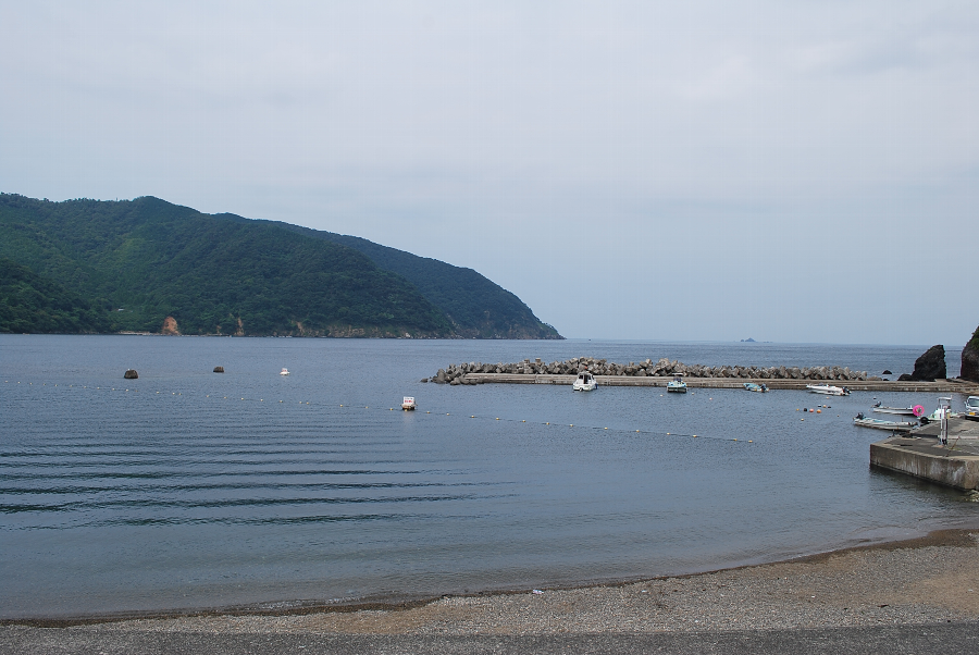 食見海岸は、低いうねりがありますが、比較的穏やかです。