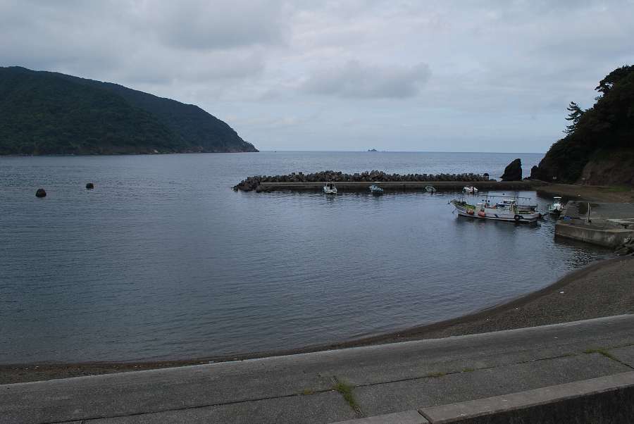 食見海岸は、沖合いから岸にかけてのさざ波がありますが穏やかな海況です。