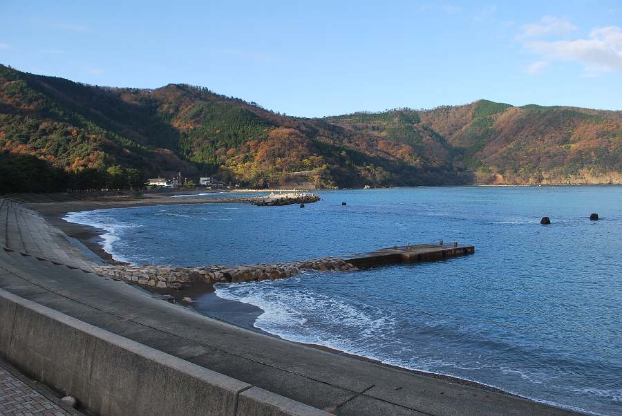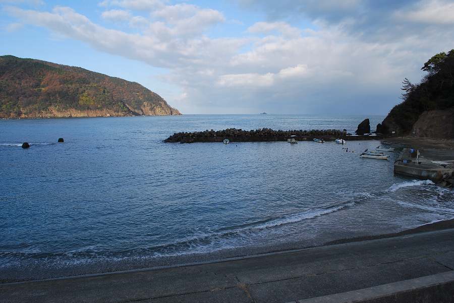 食見海岸は、1mの波があり、たまに波が防波堤を超えているときがあります。