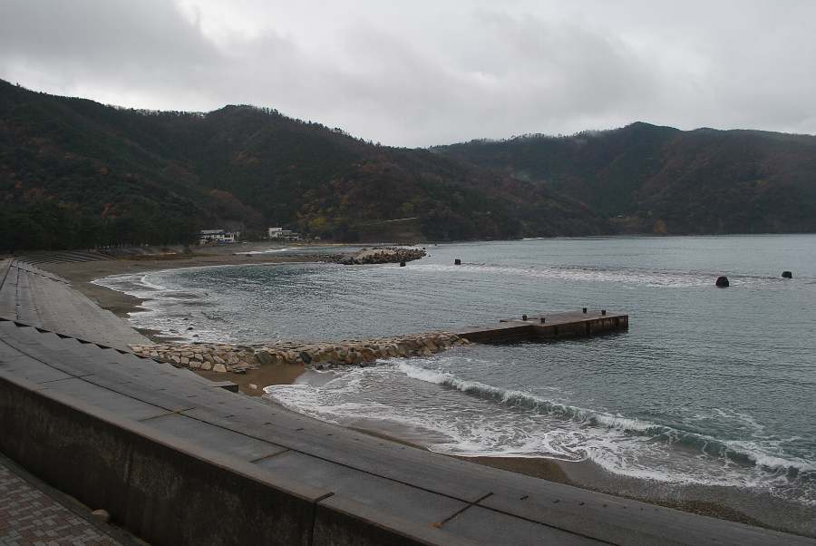 2016年12月11日9時現在は雨で、北風が吹いています。 食見海岸は、1mの波があり、時々防波堤に波がかぶります。 海水の透明度は低く濁っており、海中の様子は見えません。