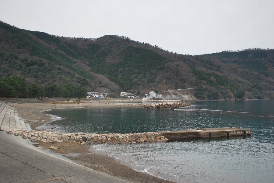 2017年1月8日9時現在は、曇りで、ほとんど風はありません。 食見海岸は、波もなく非常に穏やかな海況です。 海水の透明度は高く、港内の海底にいるナマコやウニも見えるほどでした。