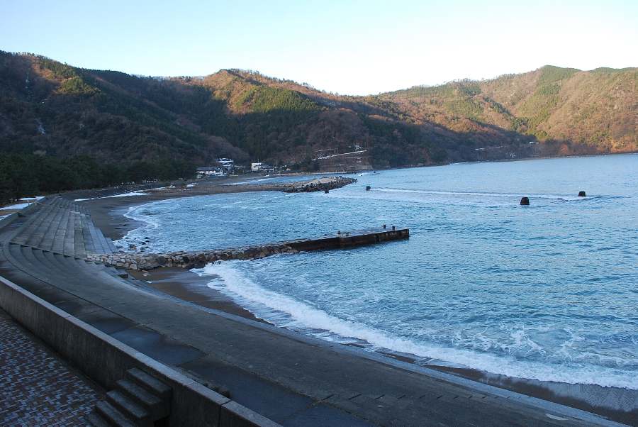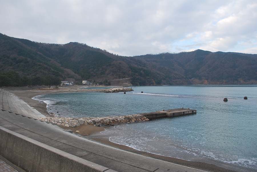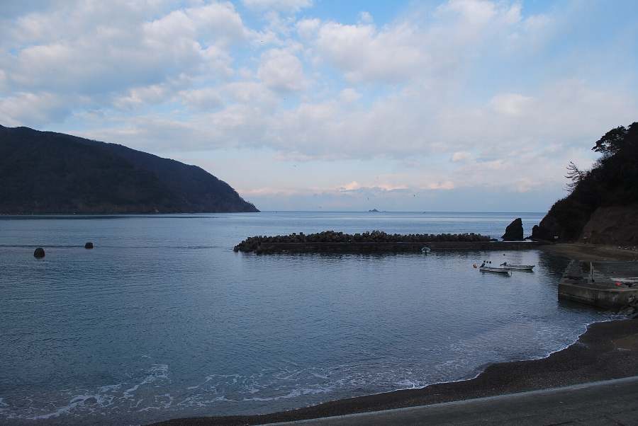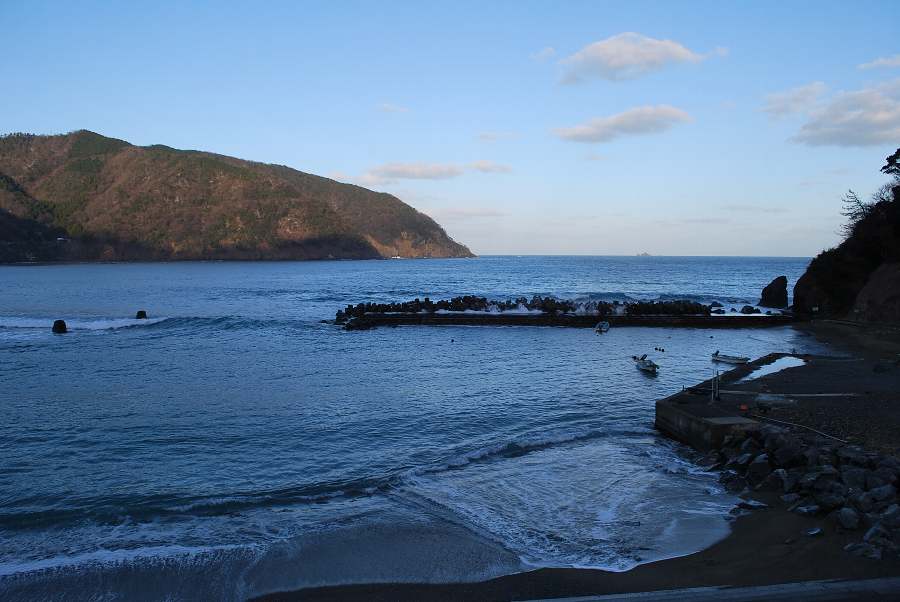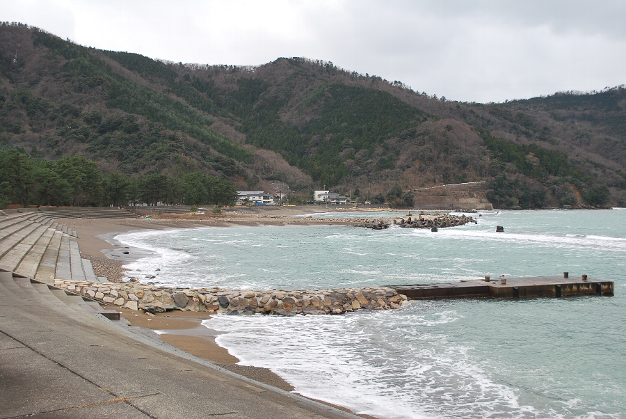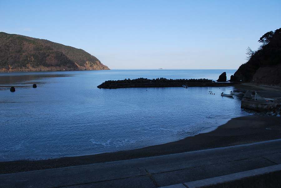 食見海岸は、岸から沖合いにかけてのさざ波がありますが、穏やかな海況です。