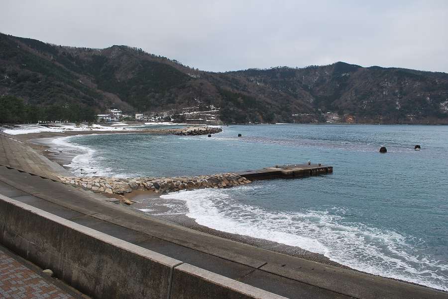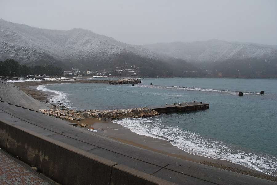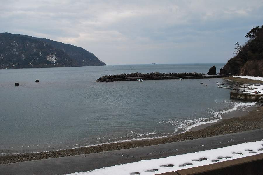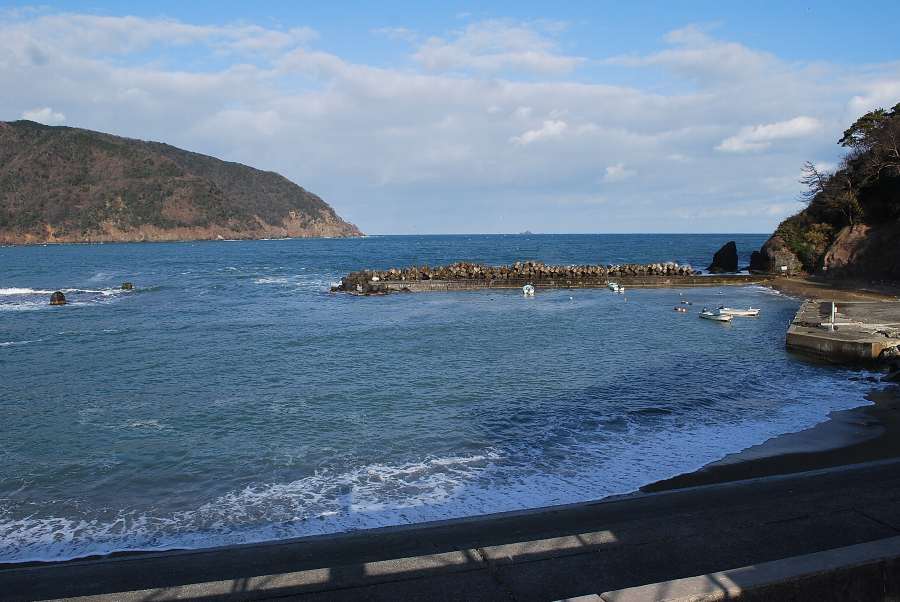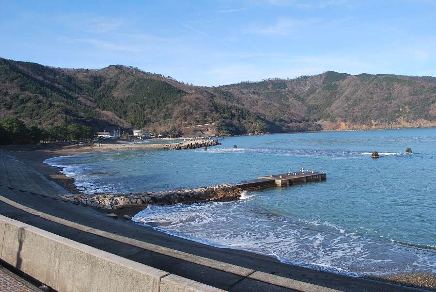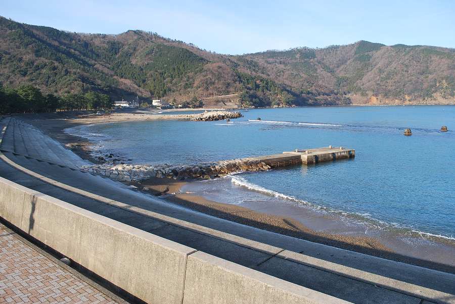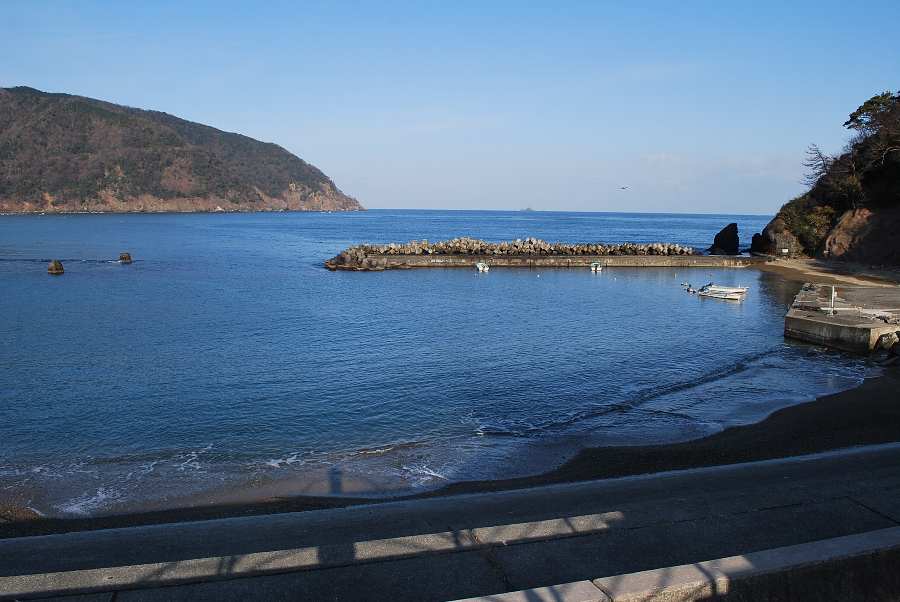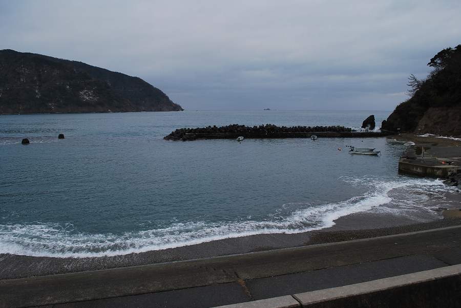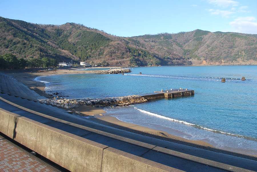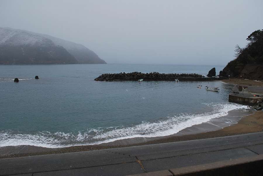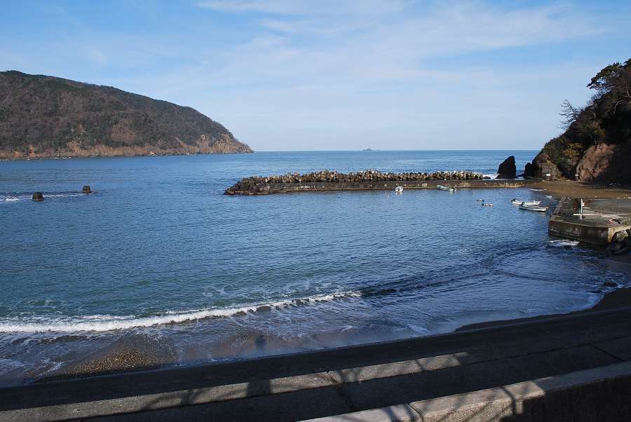 食見海岸はほとんど波もなく、穏やかな海況です。