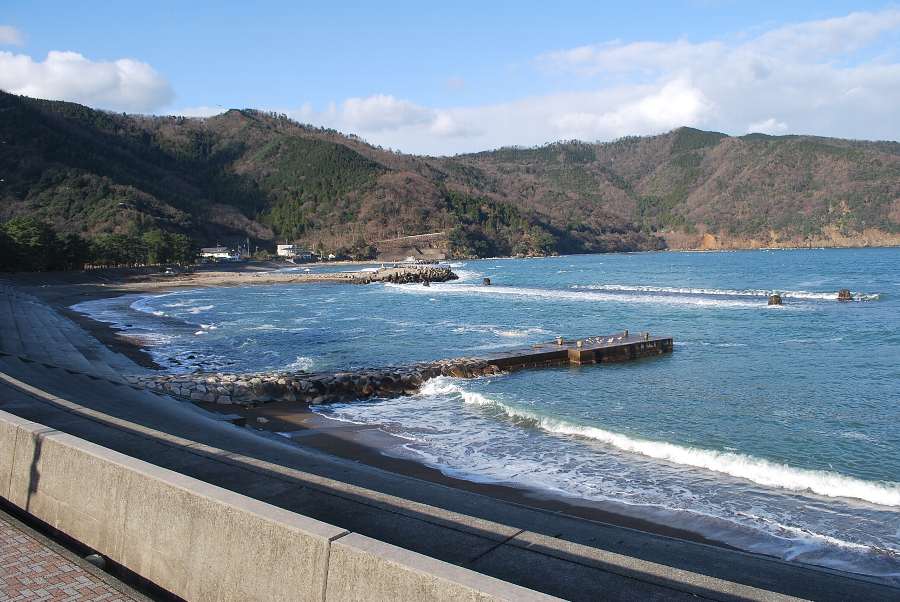 食見海岸は岸から沖合いにかけてのさざ波があり、比較的穏やかな海況です。