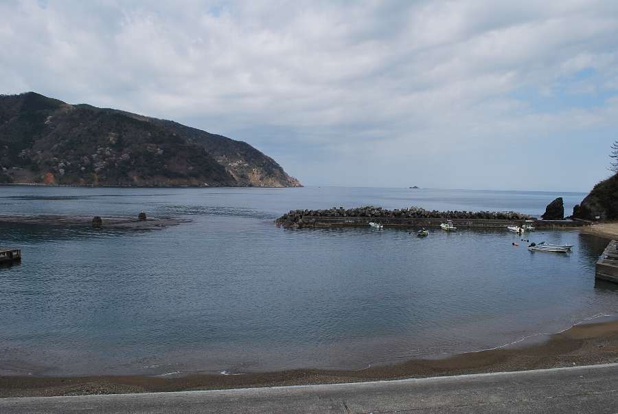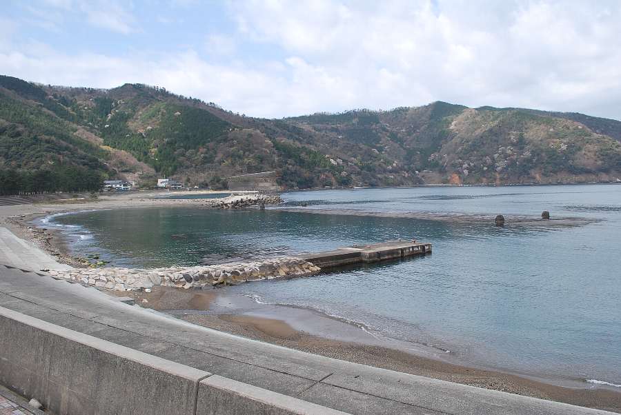 2017年4月13日9時現在は、晴れで弱い南風が吹いています。 食見海岸は波はなく、穏やかな海況です。 海水の透明度は高く、港内の海底の岩にくっつくイトマキヒトデが見えました。
