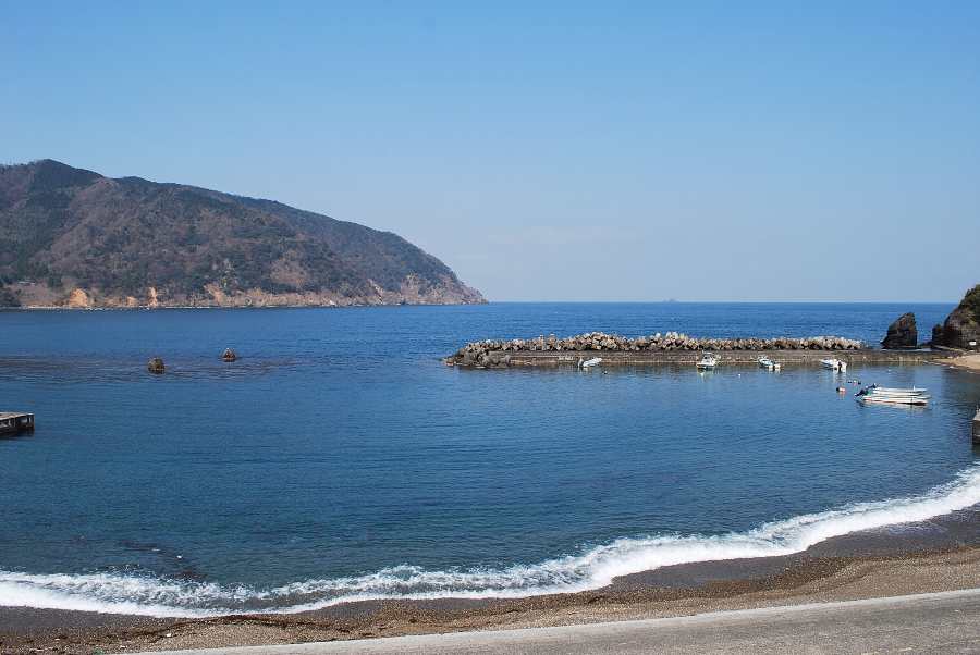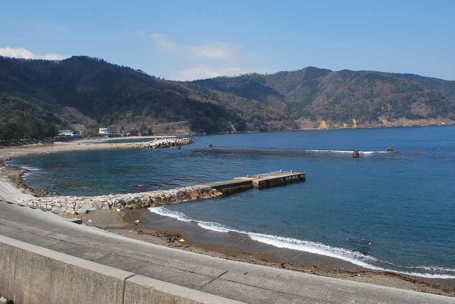 食見海岸は風によるさざ波しかなく、穏やかな海況です。