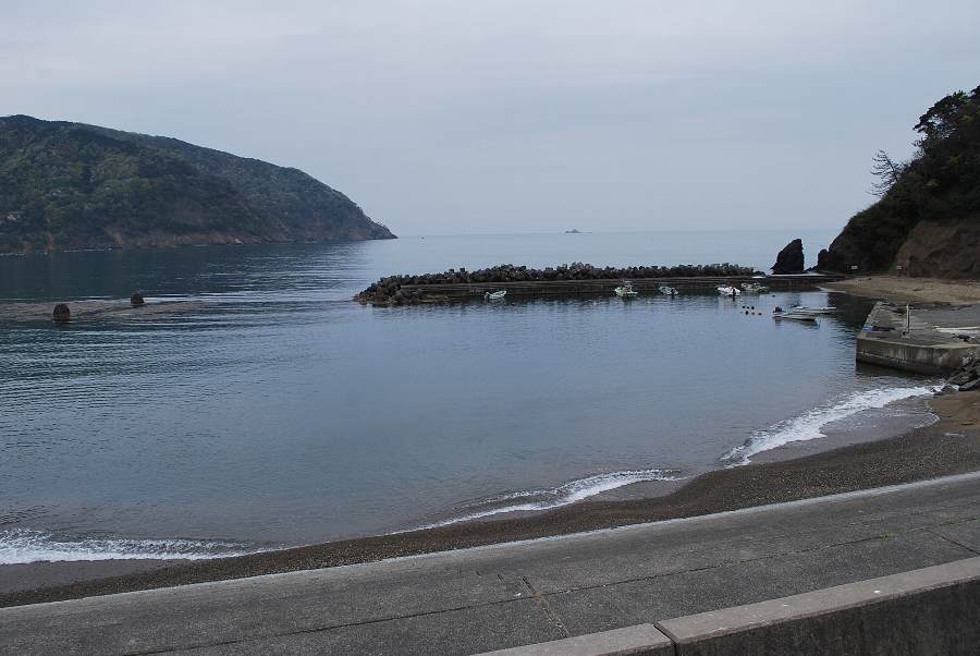 食見海岸は1mほどの波があり、時おり防波堤を越えることもあります。