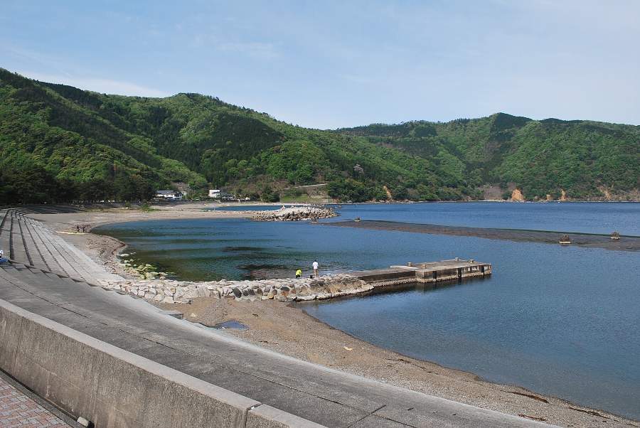 透明度は高く、港内の岩に生えている海藻や泳いでいるメジナが見えました。