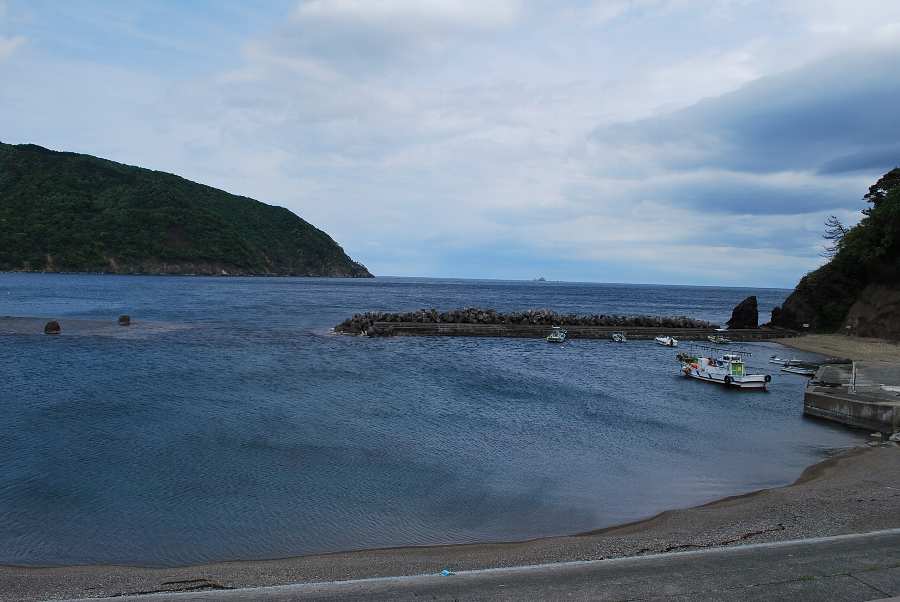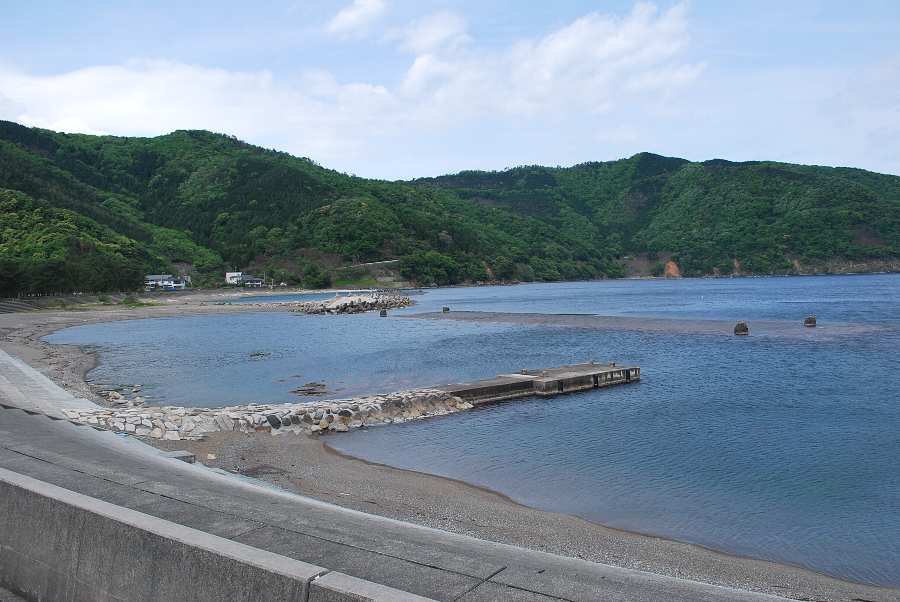 食見海岸は、岸から沖へ向けてのさざ波があります。