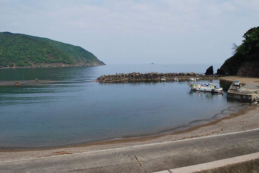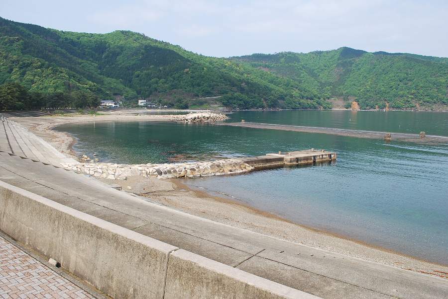 食見海岸は、沖から岸にかけてのさざ波があります。