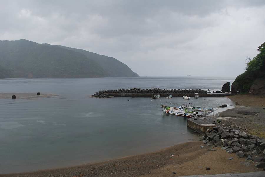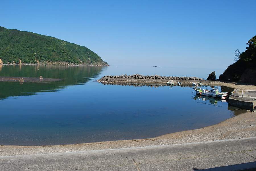 食見海岸の港内では、さざ波があり穏やかな海況ですが、