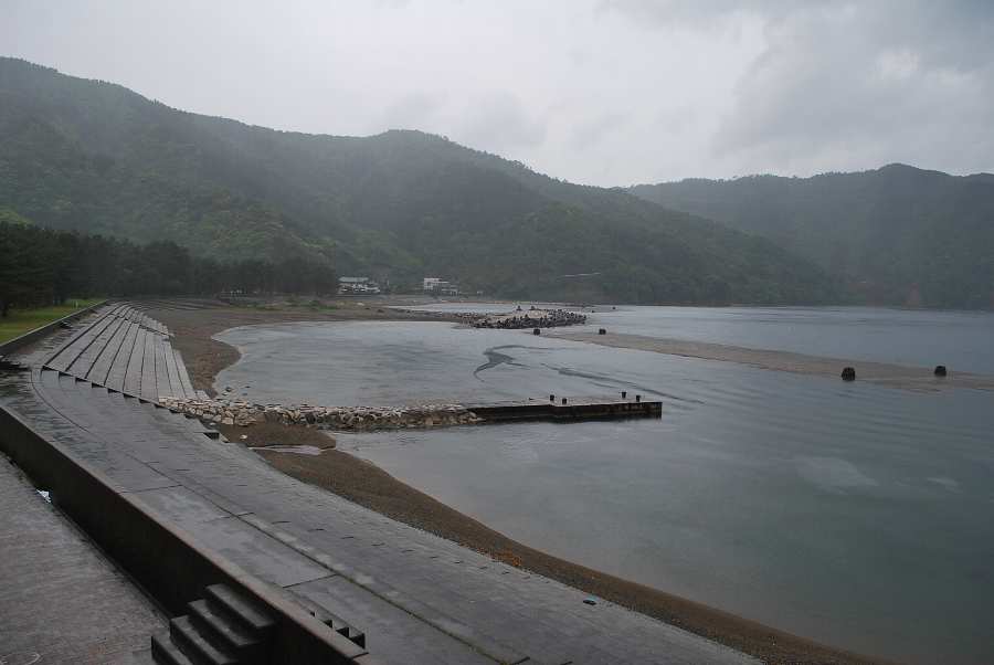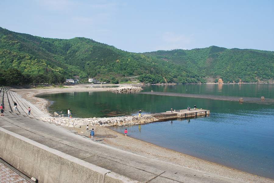 食見海岸は、沖から岸にかけてのさざ波があります。