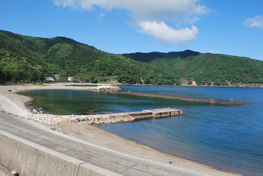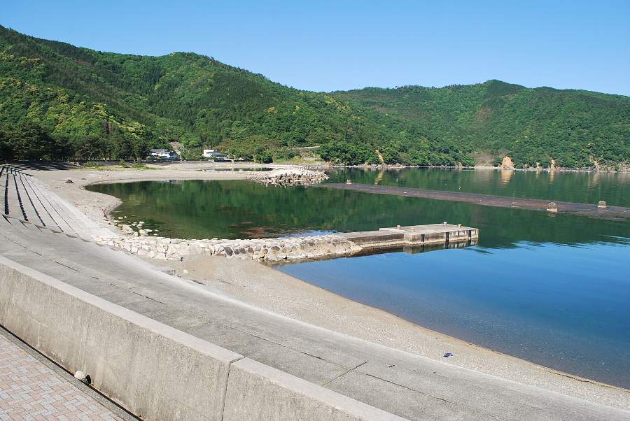 食見海岸は波がなく、非常に穏やかな海況です。