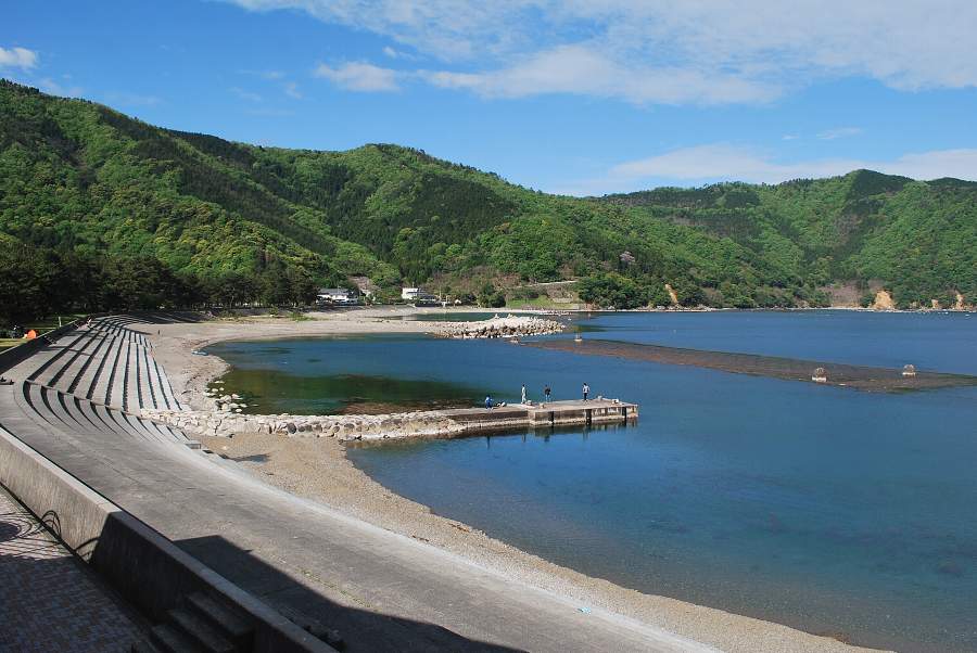食見海岸は岸から沖合いにかけてのさざ波があり、穏やかな海況です。