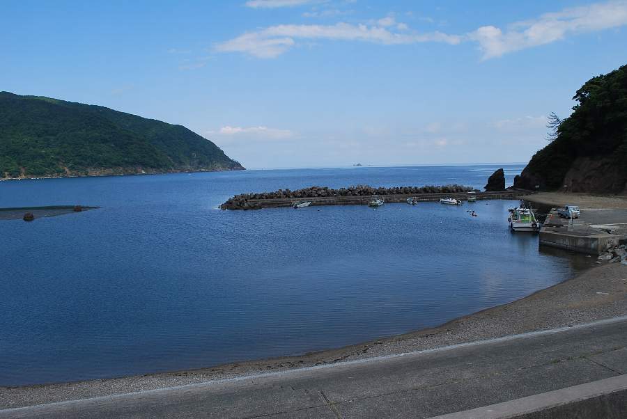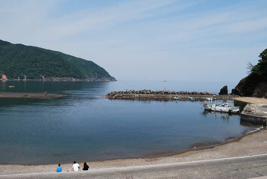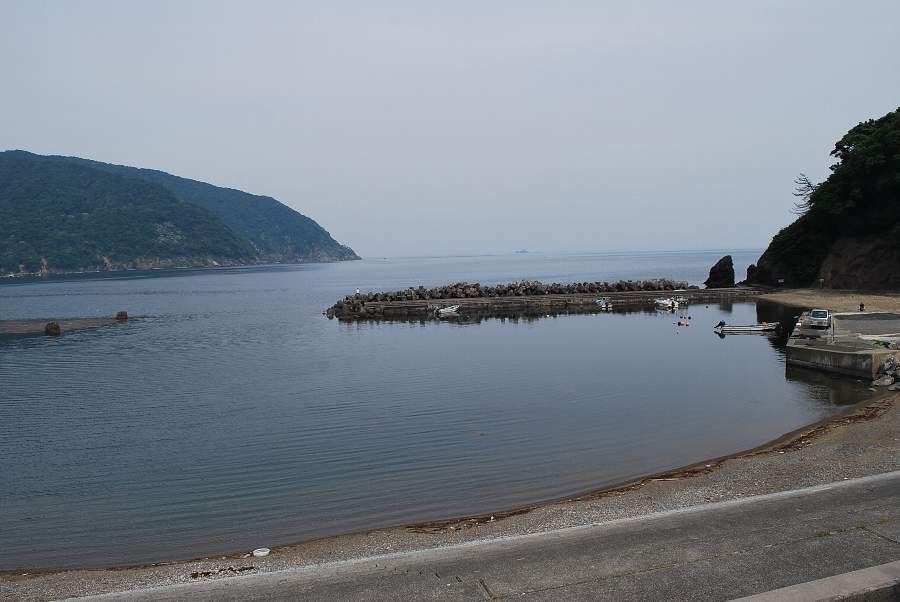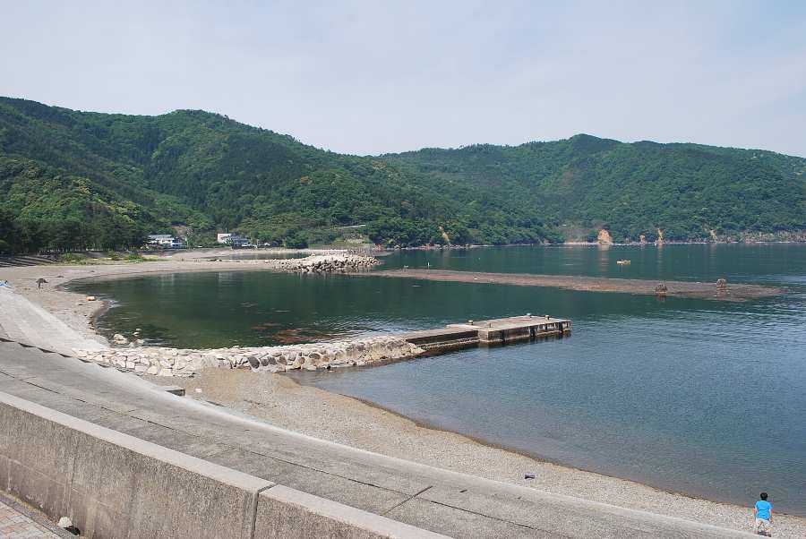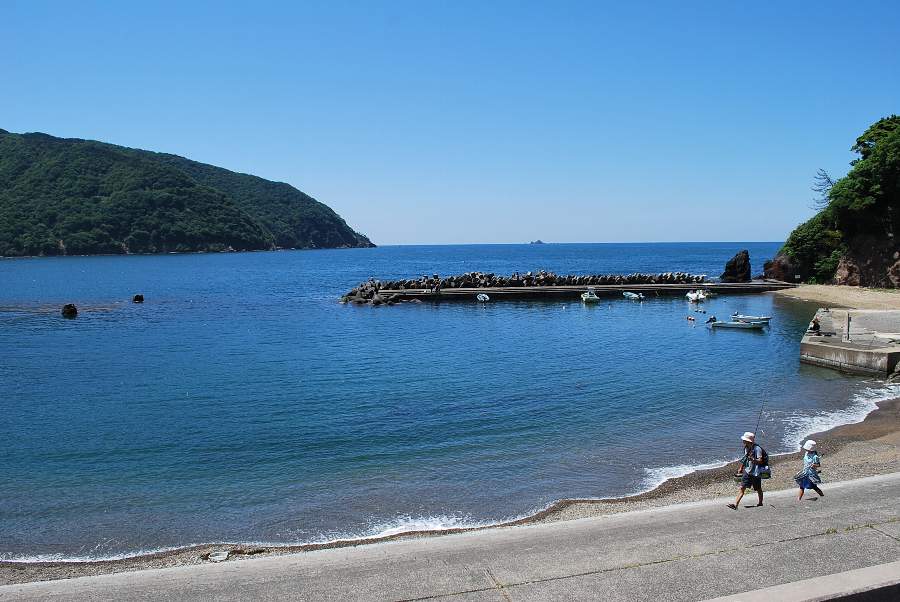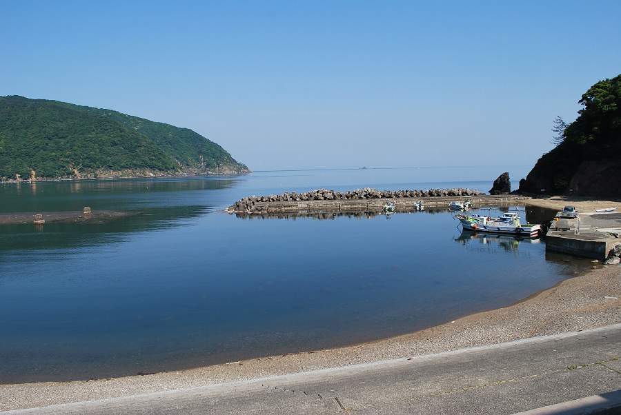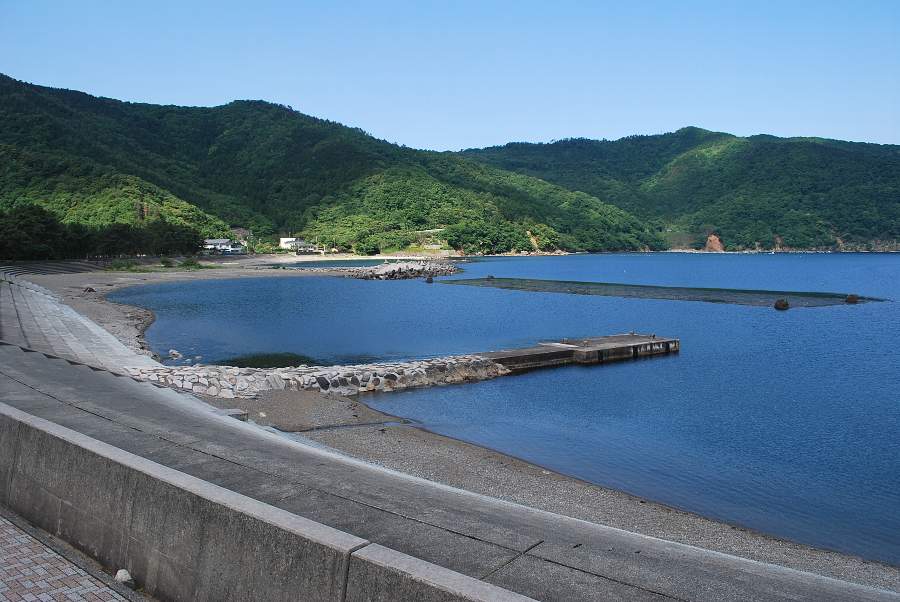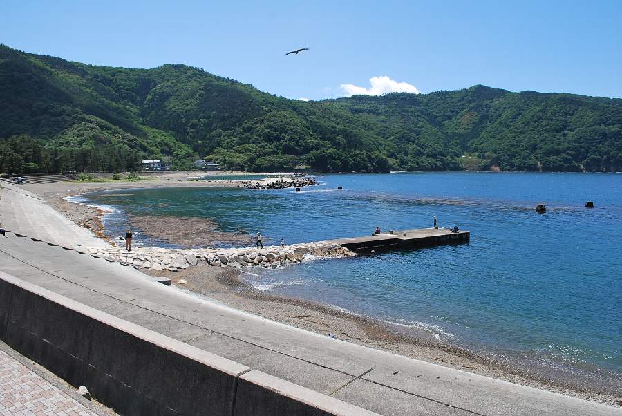 食見海岸は波がなく、非常に穏やかな海況です。