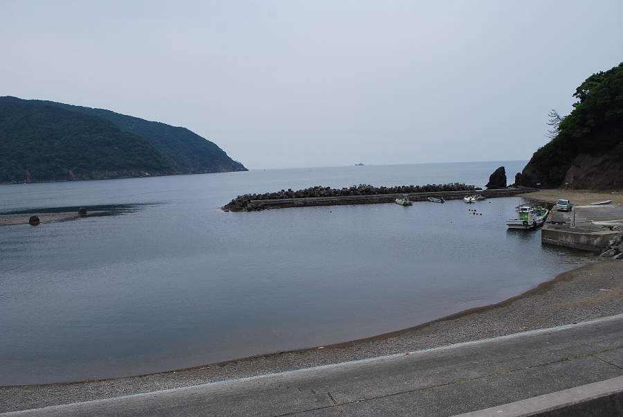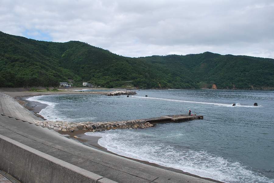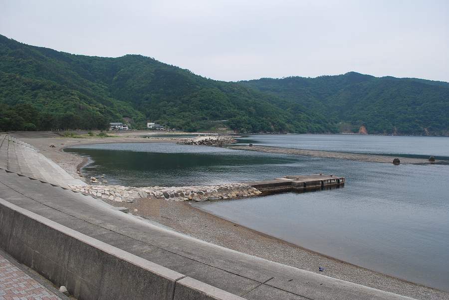 食見海岸はさざ波しかなく穏やかな海況です。