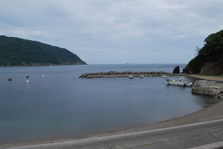 2017年7月11日9時現在は、曇りで南風が吹いています。 食見海岸は南風によるさざ波がありますが、穏やかな海況です。 海水の透明度は高く、メジナの稚魚の泳ぐ姿が見えました。