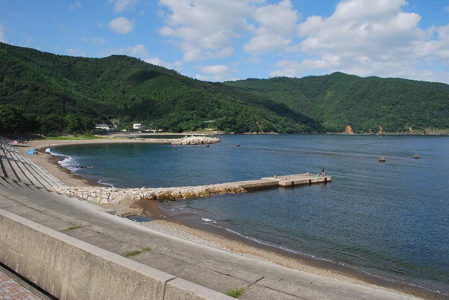 食見海岸は約0.5mの波がありますが、穏やかな海況です。