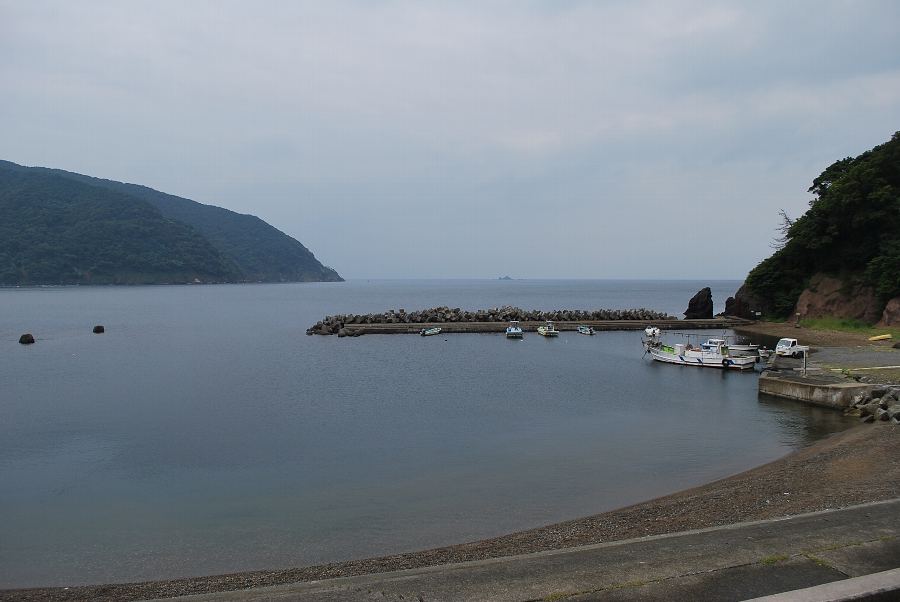 2017年9月7日9時現在は、南の風が吹いており、ポツポツと弱い雨が降っています。 食見海岸は波もなく穏やかな海況です。 海水の透明度はやや高く、メジナの群れが泳いでいるのが見えました。