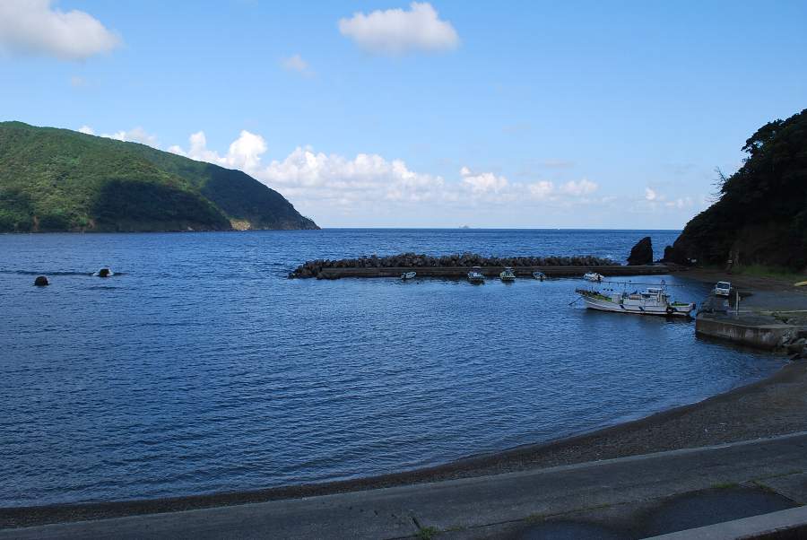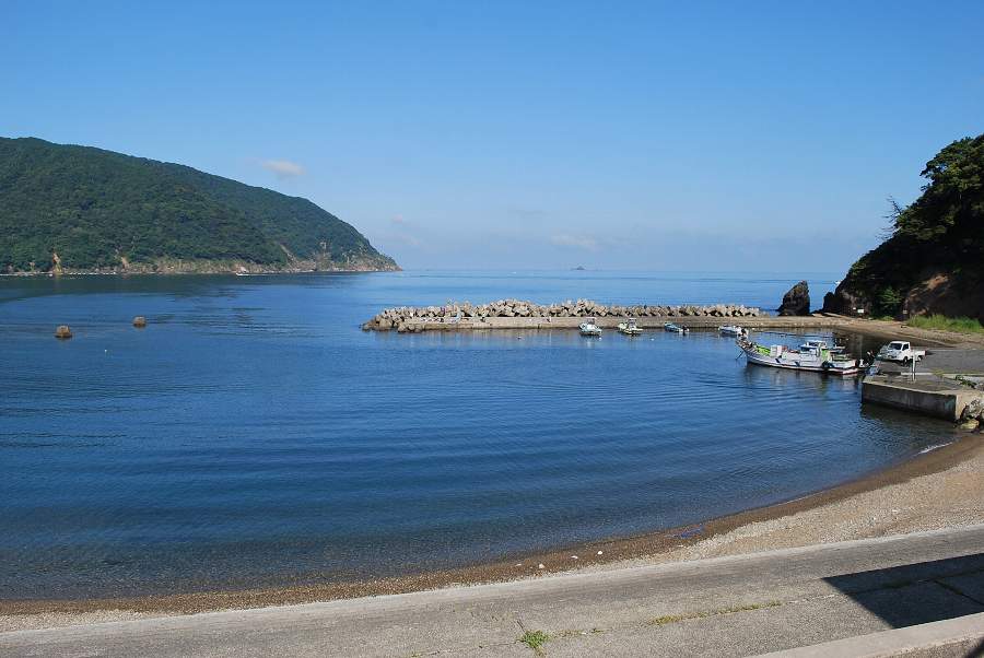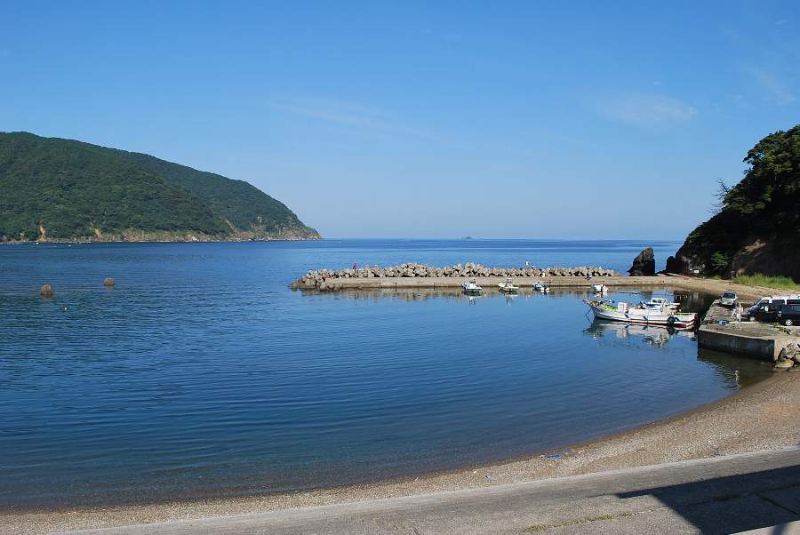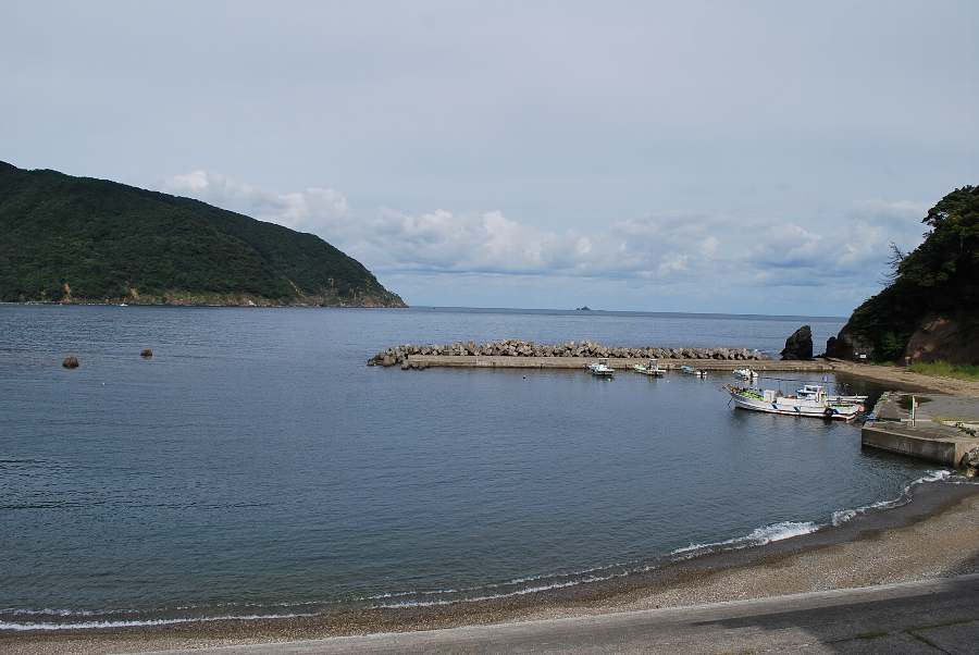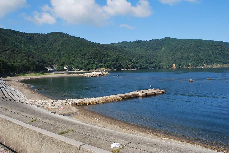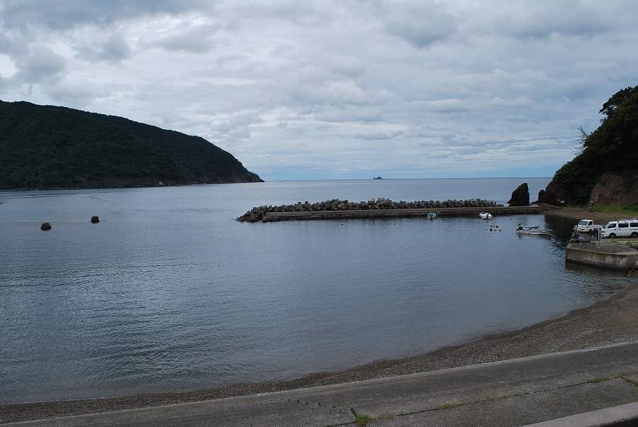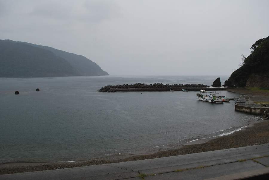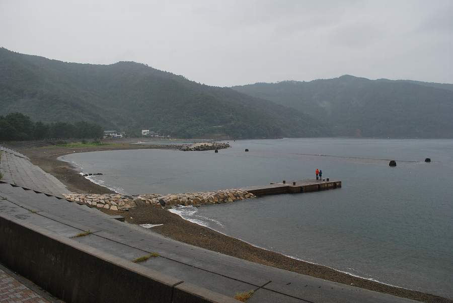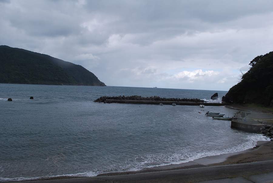 食見海岸は3mの波があり、時おり防波堤を越えています。