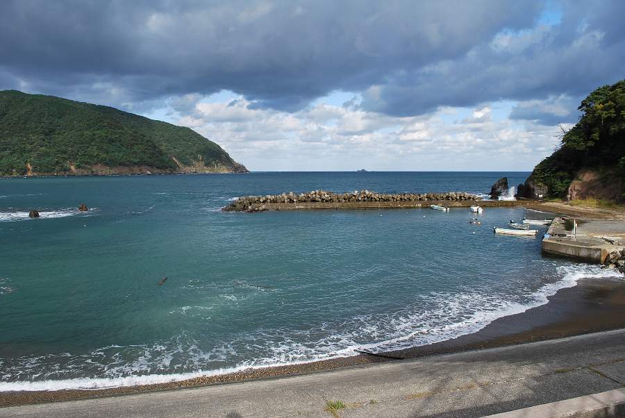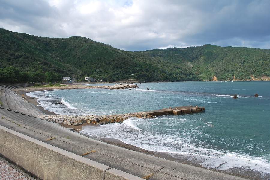 食見海岸は約2mの波があり、時々防波堤に波が被ります。