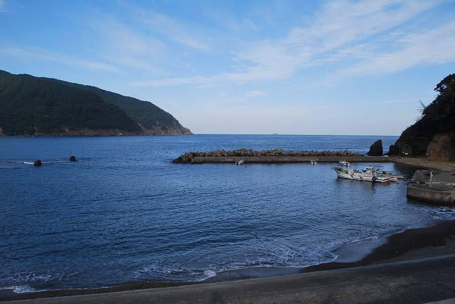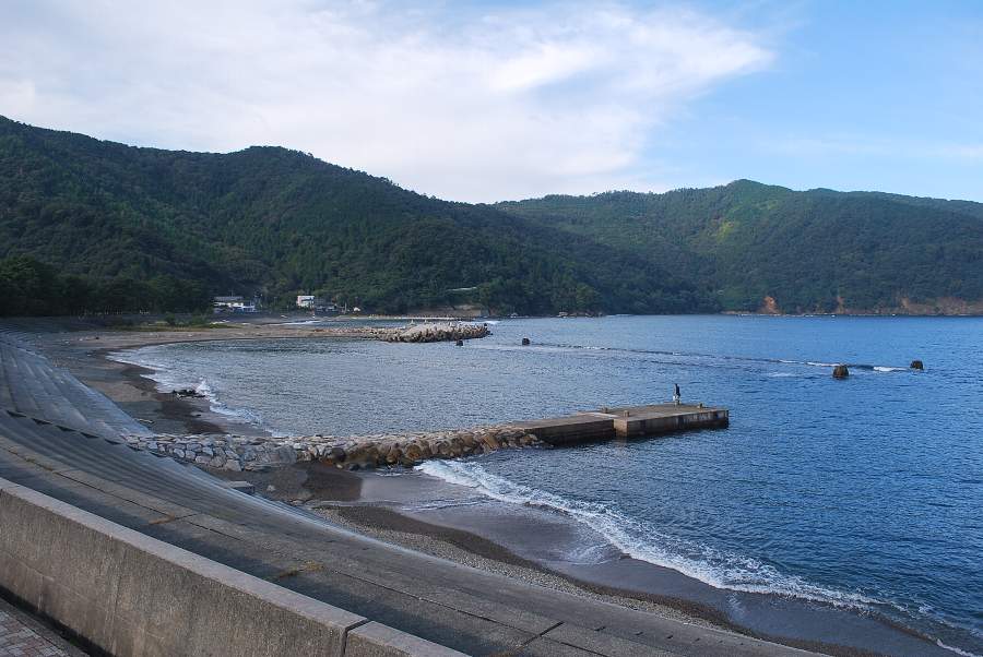 2017年10月18日9時現在は、晴れで北の風が吹いています。 食見海岸は約1mの波があり、時々防波堤の根元に波が被ります。 海水の透明度は高く、海底にある岩が良く見えました。
