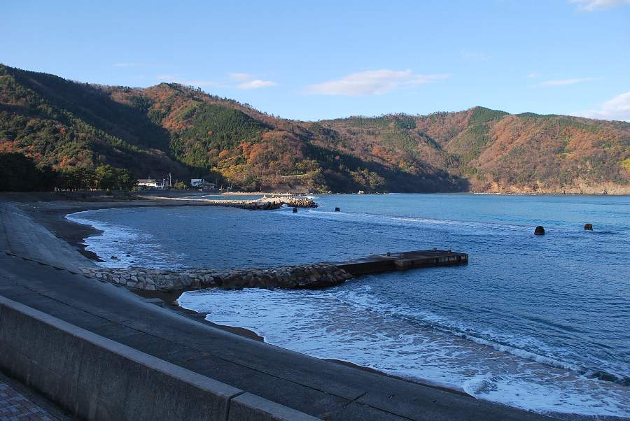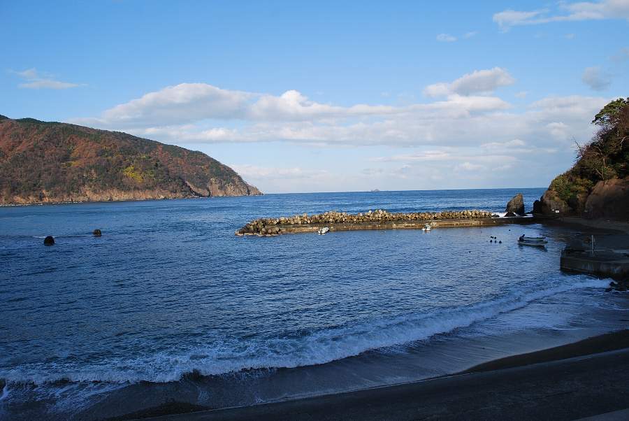 食見海岸は約1mの波があり、時々防波堤の根本に波が被ります。